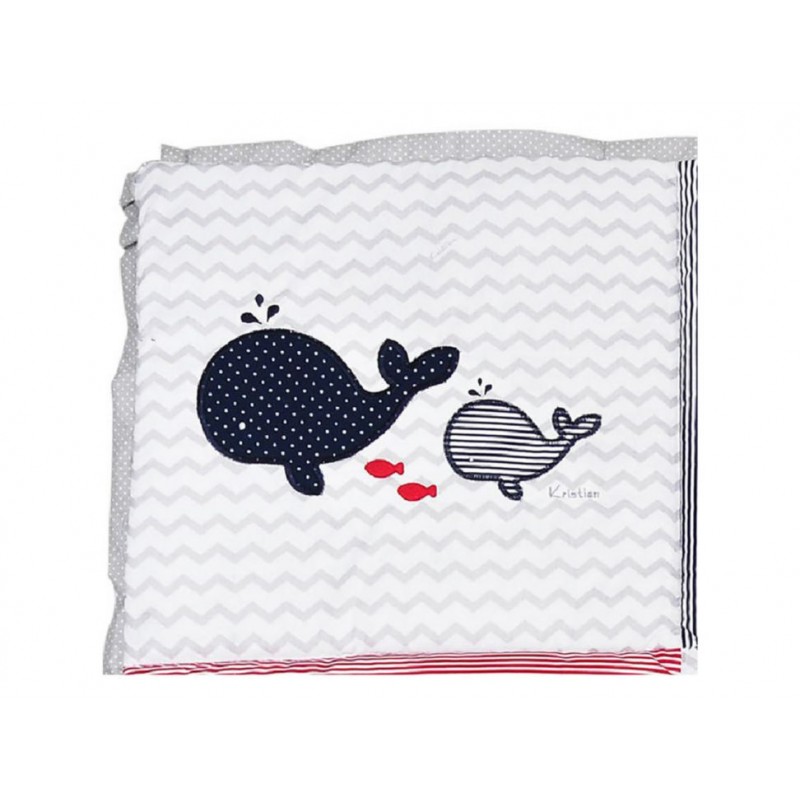Diseños originales patentados logrando un equilibrio cromático entre el bordado y las telas. Ligera y confortable. Fuera de la cuna se coloca en el piso para que juegue él bebé y sobre una cama para dormirlo