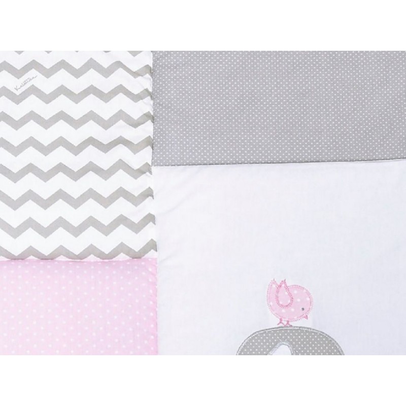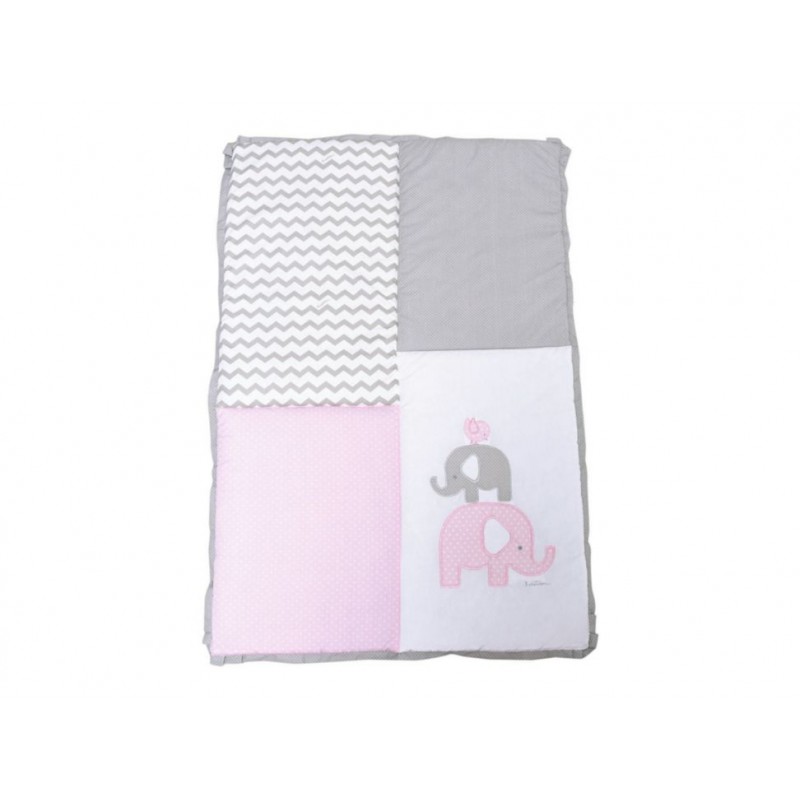 Diseños originales patentados logrando un equilibrio cromático entre el bordado y las telas. Ligera y confortable. Fuera de la cuna se coloca en el piso para que juegue él bebé y sobre una cama para dormirlo