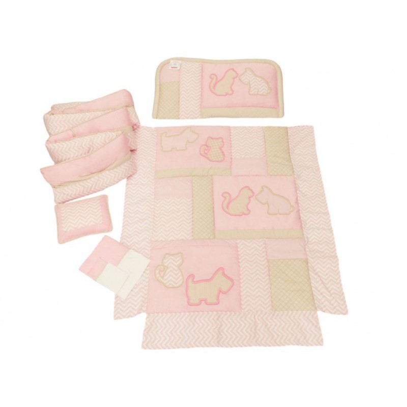 Piezas que IncluyeSábana plana, sábana cajón, funda de almohada, colchoneta, cabecera, protector y cojín