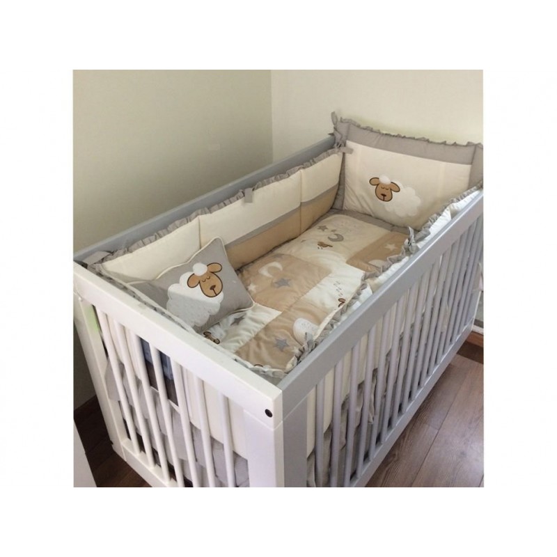 Piezas que IncluyeEdredón, protector de barandal, protector de cabecera, juego de sábanas (cajón, encimera y funda), cojín decorativo con bordado