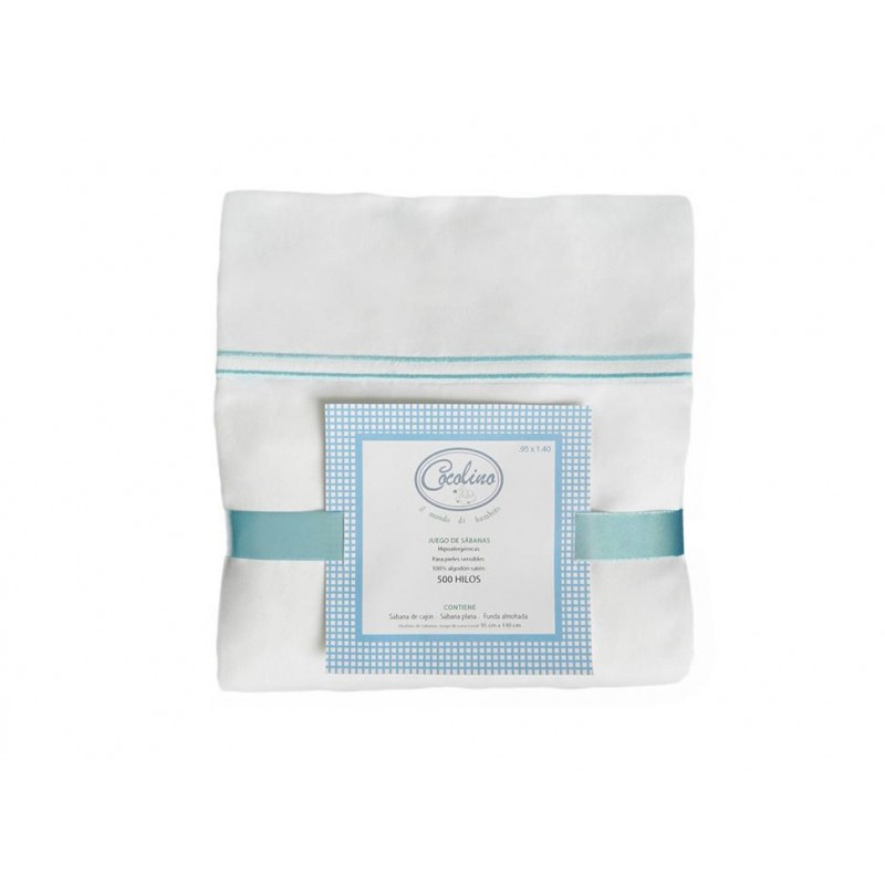 Bríndale a tu bebé el mayor confort al adquirir sábanas fabricadas en algodón 100% satinado de 500 hilos. Fino bordado color azul en la cenefa realizado con hilo de poliseda.