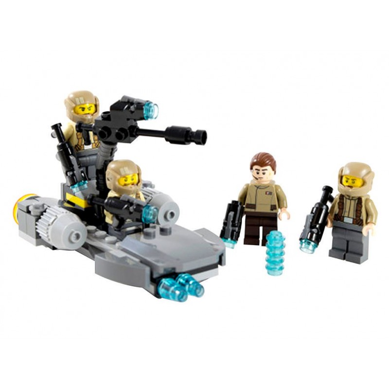 IncluyeIncluye 4 minifiguras: 3 soldados y un oficial de la Resistencia, Cuenta con un speeder con espacio para 2 minifiguras y un tirador giratorio, Incluye 4 pistolas y extra de munición para el tirador, También incluye 3 cascos de Soldado