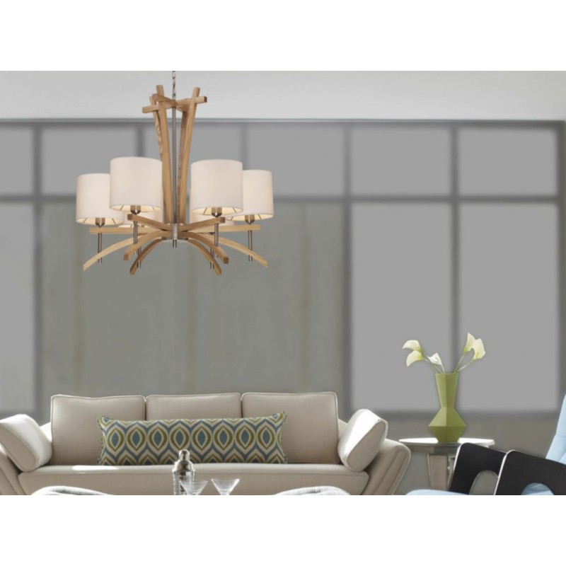 Otra InformaciónCandil estilo contemporáneo, trabajado en madera color natural y terminado níquel cepillado. Dimensiones; 85 cm x 71 cm x 57 cm. Peso 87.6 kg. 40 watts, 127 voltaje. Pedido especial, entrega estimada de 20 días