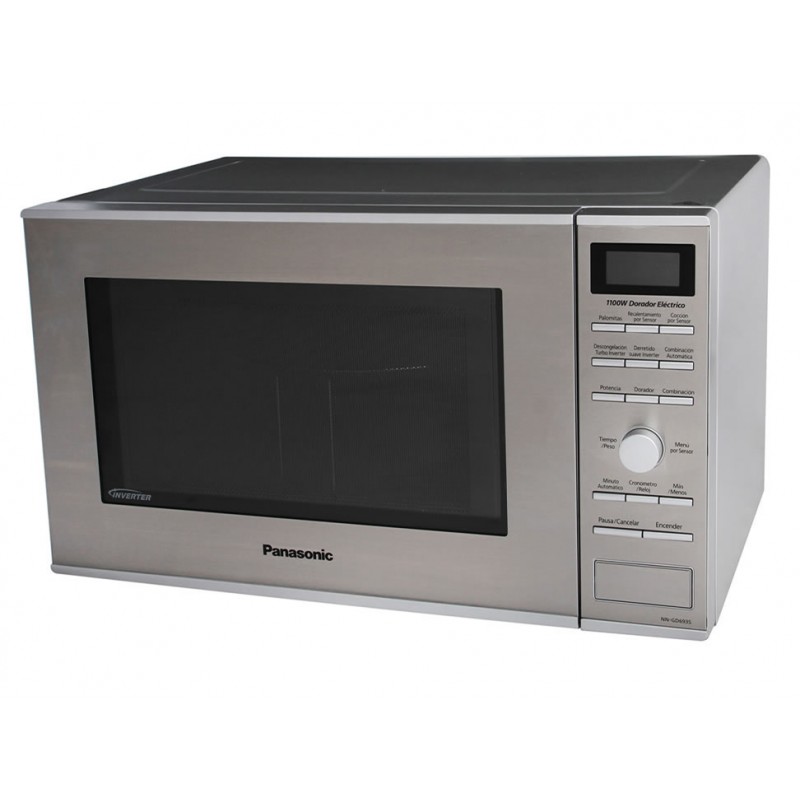 El Horno de Microondas 1.1 Pies Cúbicos Panasonic Silver NN-GD693SRPH es un electrodoméstico con buena capacidad para ser usado en el hogar. Dispone de 10 niveles de potencia que permiten preparar diversos alimentos de una manera rápida y sencilla. Su tablero de control cuenta con un seguro para prevenir que sea utilizado por niños pequeños. Dos de las funciones más prácticas del Horno de Microondas 1.1 Pies Cúbicos Panasonic Silver NN-GD693SRPH son la de recalentamiento automático y la de auto descongelado. Con el Horno de Microondas 1.1 Pies Cúbicos Panasonic Silver NN-GD693SRPH podrás dorar tus alimentos en menos tiempo, debido a que también funciona como parrilla de cocción simultánea. Está diseñado con sistema de iluminación LED en el interior, para poder visualizar todos los alimentos. Las 18 opciones a escoger en el menú preestablecido del Horno de Microondas 1.1 Pies Cúbicos Panasonic Silver NN-GD693SRPH hacen muy fácil cocinar los platillos. Incluye una pantalla digital con reloj y luz de encendido en color verde. Una de sus ventajas principales es que cuenta con un sensor de cocción que determina el momento en que están listos los alimentos de manera automática. La opción para preparar palomitas está disponible directamente en un botón de su tablero de control.
