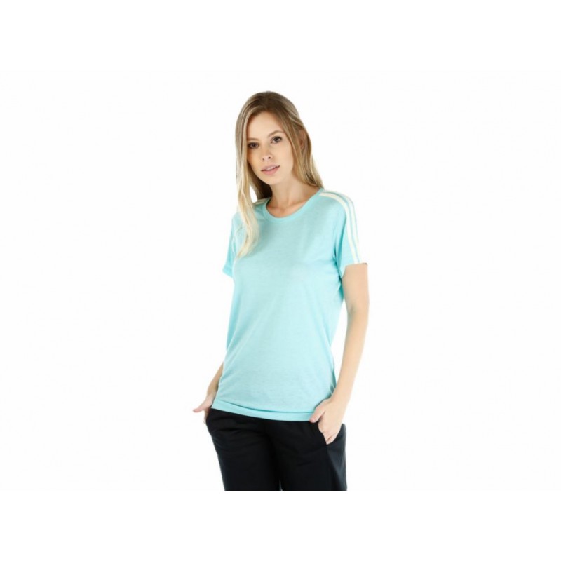 Playera con logo de la marca en parte inferior izquierda, franjas distintivas de Adidas en hombros, costuras suaves. Confección ligera que brinda mayor libertad de movimiento