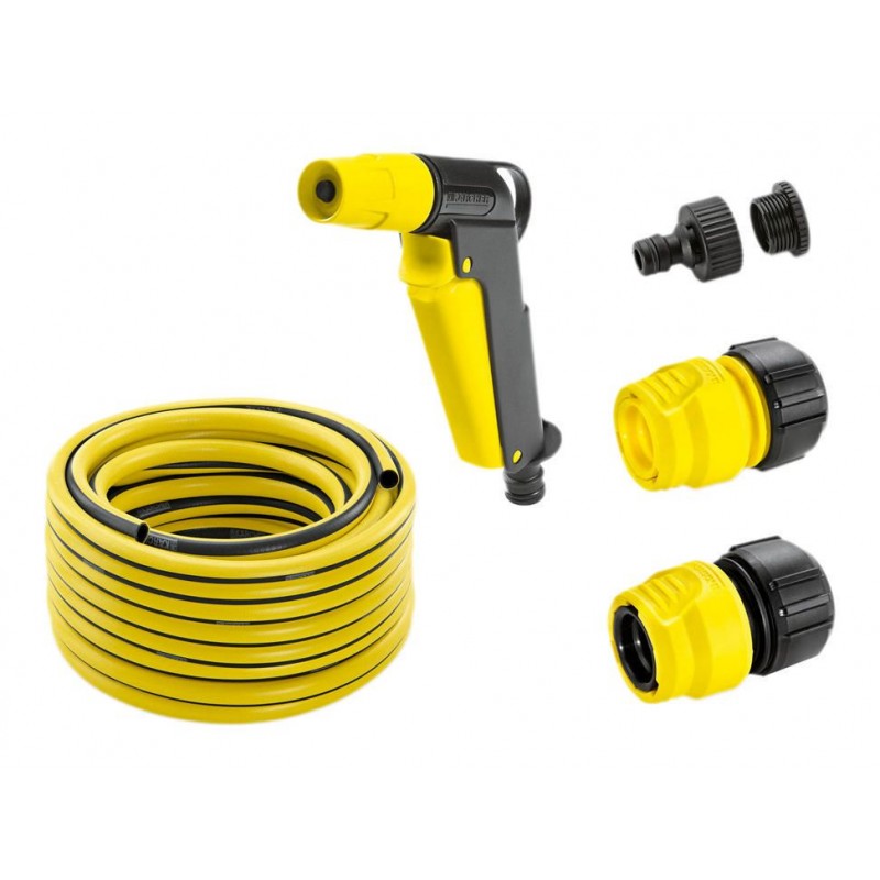 CaracterísticasManguera Primoflex, pistola de pulverización, G adaptador de 3/4 del grifo con G 1/2 reductor, conector de la manguera universal, conector de la manguera universal con sistema Aqua Stop, riego sistemas / mangueras y almacenamiento de manguera
