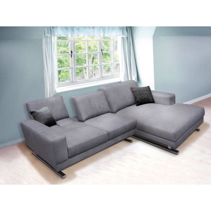 Sofá muy versátil. Lado izquierdo o derecho. Incluye módulo para complementar, pata cromada tipo trineo reforzada. Tela importada de 100% poliéster, muy suave al tacto. Herrajes en los respaldos para incrementar la profundidad y confort